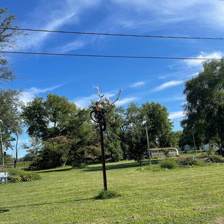 After a night of repeatedly sliding down the tent and crawling back up (we were sleeping on a slant), we were determined to start early and avoid the treacherous night walking that we encountered the previous night. Today was Sam’s birthday, and he wished to never have to walk again at night. We stopped first at a Dollar General in the town of Altamont about 6 miles in. We then walked another 9 miles, passing through the town of St. Elmo before stopping in Brownstown for our midday rest. After the rest, we walked another 11 miles to the town of Vandalia. Along the way, we passed a large group of cows who started walking alongside us along the fence. In Vandalia, we went to Ponderosa Steakhouse for a buffet dinner in celebration of Sam’s birthday. We had about half an hour to eat before closing, so we ate as much as we could before heading out. We then went to Starmax Cinemas to watch Bullet Train at 9:30pm. The movie was pretty mediocre but somewhat entertaining, and I also dozed off from time to time. After the movie, we pitched our tents on the grass behind the theater. The grass was not mowed, which made the ground feel very soft underneath our tents.